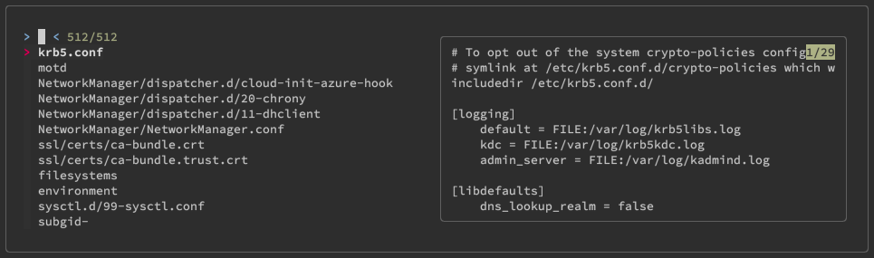 cat `find /etc/* -type f | fzf`