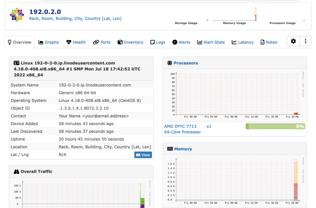 Now you should be able to review information about the device within the LibreNMS interface.